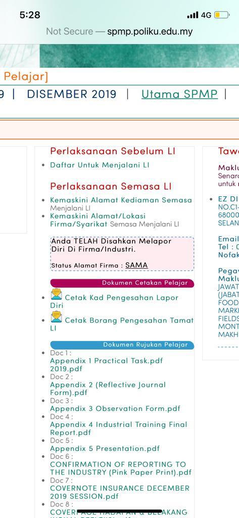 Sebarang kemuskyilan, sila berhubung dengan Penyelaras Latihan Industri (PLIJ) di jabatan masing-masing