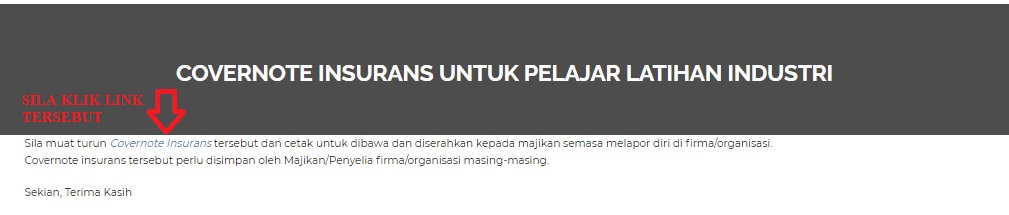 Untuk muat turun dokumen Cover Note Insurans, sila layari makluman di http://www.poliku.edu.my/v3/