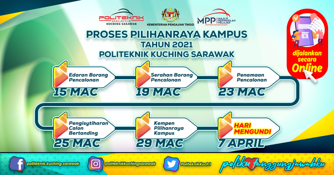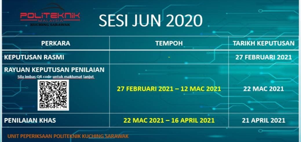 Semua pelajar dikehendaki mendaftar balik pada 12 Jun 2017 ( 8.30 pagi - 12.00 tgh) di Politeknik Kuching Sarawak. Sila daftar balik di Jabatan masing-masing.