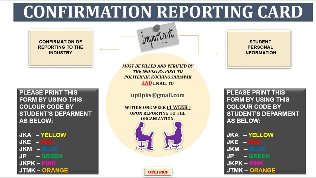 ANDA DI KEHENDAKI MELENGKAPKAN BORANG PINK & YELLOW SERTA MENGHANTAR KAD YANG TELAH DISAHKAN OLEH PIHAK INDUSTRI KE UPLI MELALUI EMAIL uplipks@gmail.com DALAM TEMPOH SEMINGGU SELEPAS MELAPOR DIRI KE SYARIKAT.